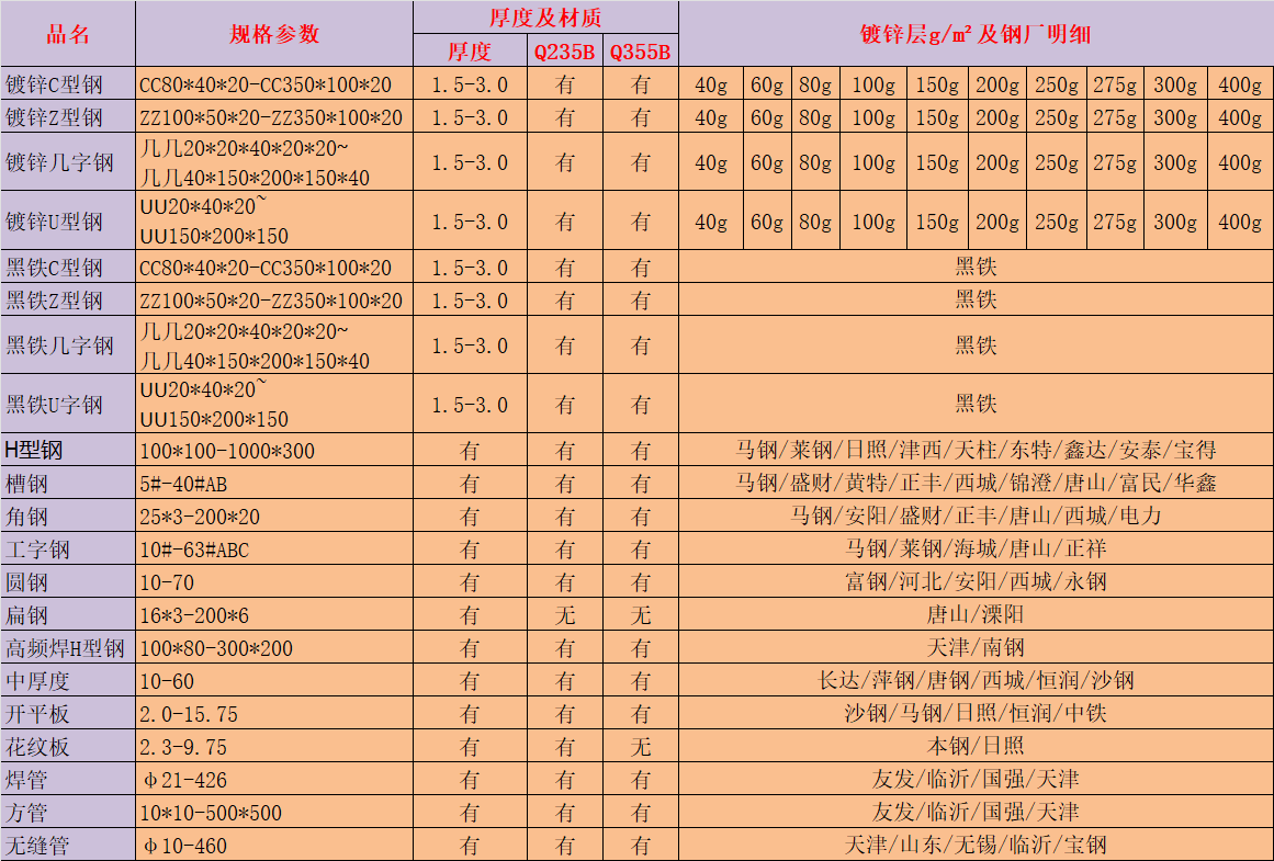 鍍鋅C型鋼 鍍鋅Z型鋼 鍍鋅幾字鋼 樓承板 應用場景 生產環境 加工業務